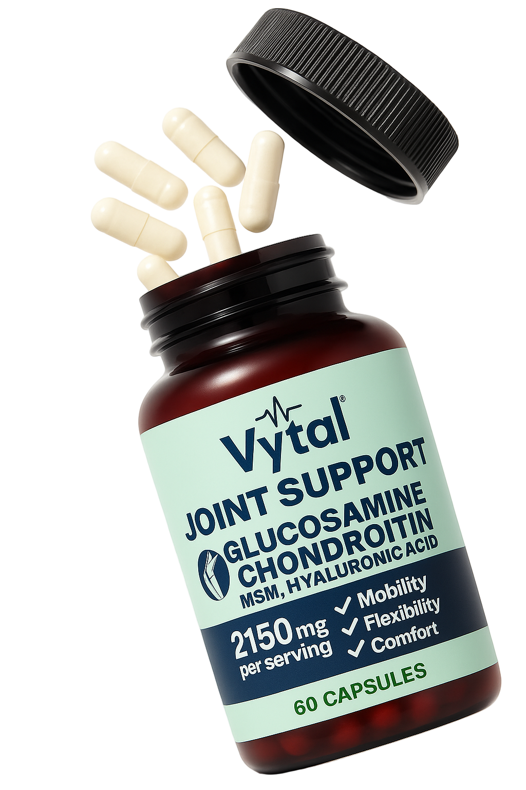 Vytal is different because it actually targets the root cause of joint discomfort — the breakdown of cushioning and fluid that keeps your joints moving smoothly. Each capsule contains clinically dosed Glucosamine, Chondroitin, MSM, and Hyaluronic Acid, which work together to rebuild cartilage, restore joint lubrication, and calm inflammation naturally.